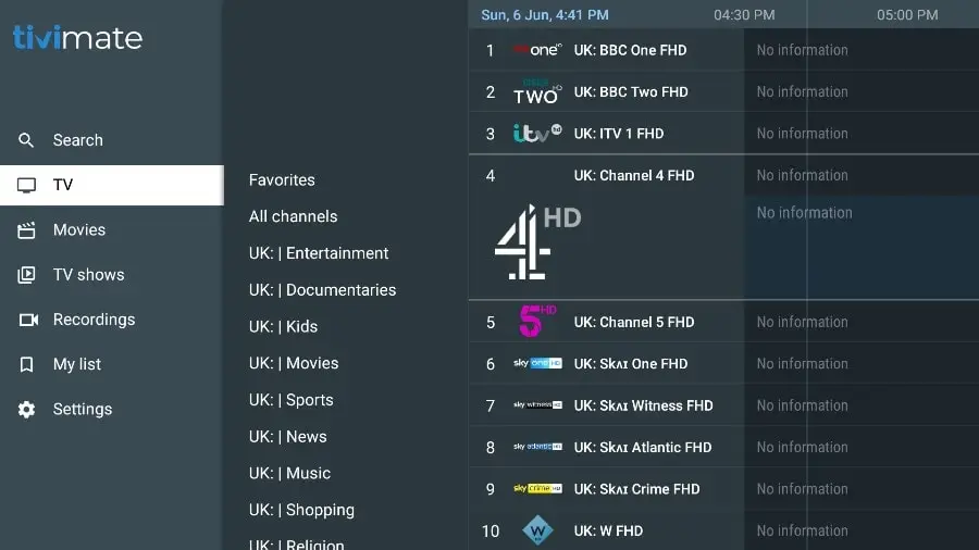 Most IPTV services come with a dedicated EPG (Electronic Program Guide), as shown below.