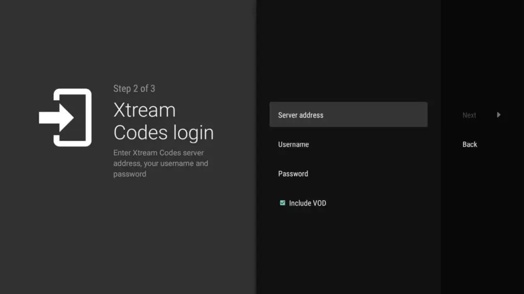 TiviMate will ask you to add a playlist using an M3U link, Xtream code, or Stalker portal. Select Xtream code. In this tutorial, we will use the Xtream code to play an IPTV service in the TiviMate application.