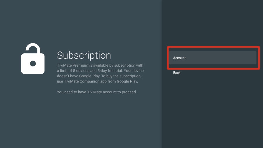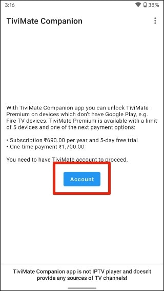 Follow the steps below to purchase a TiviMate Premium subscription using the TiviMate Companion app.
